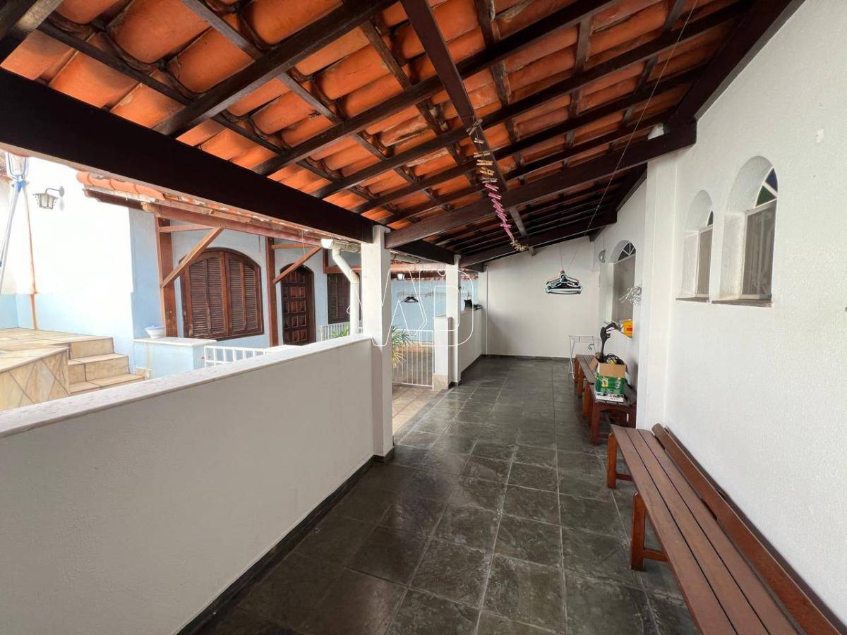 Residência composta de 2 pavimentos sendo no primeiro, 1 suíte com closet, 1 quarto grande, 1 banheiro social completo, 1 sala de jantar, 1 sala de estar grande em L, 1 cozinha ampla, varandas de frente, fundos e lateral, 2 garagens cobertas, cisterna de 15.000lts, 1 quarto externo para visitas com banheiro, piscina, 1 lavanderia coberta.