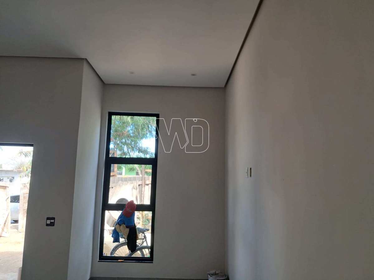O imóvel é recém construído, com jardim, garagem, sala, cozinha, dois quartos, uma suite, cozinha banheiro, área de serviço e quintal.