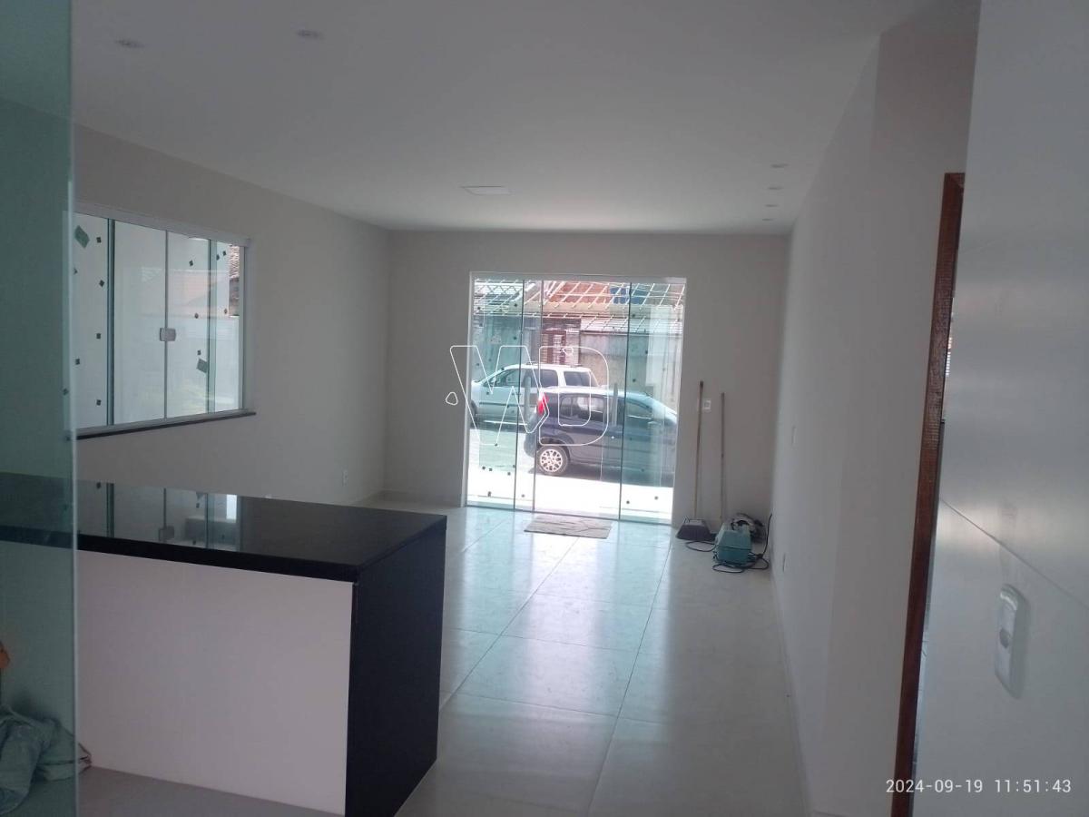 Casa no condomínio Cotrins, em manilha, com jardim, garagem, varanda, o piso todo em porcelanato, material de primeira qualidade, sala com conceito aberto, dois quartos uma suite, banheiro social, área de serviço e quintal. O imóvel e de primeira locação, pode ser financiado. Valor 380.000,00, o imóvel pode ser financiado por qualquer agente financeiro.